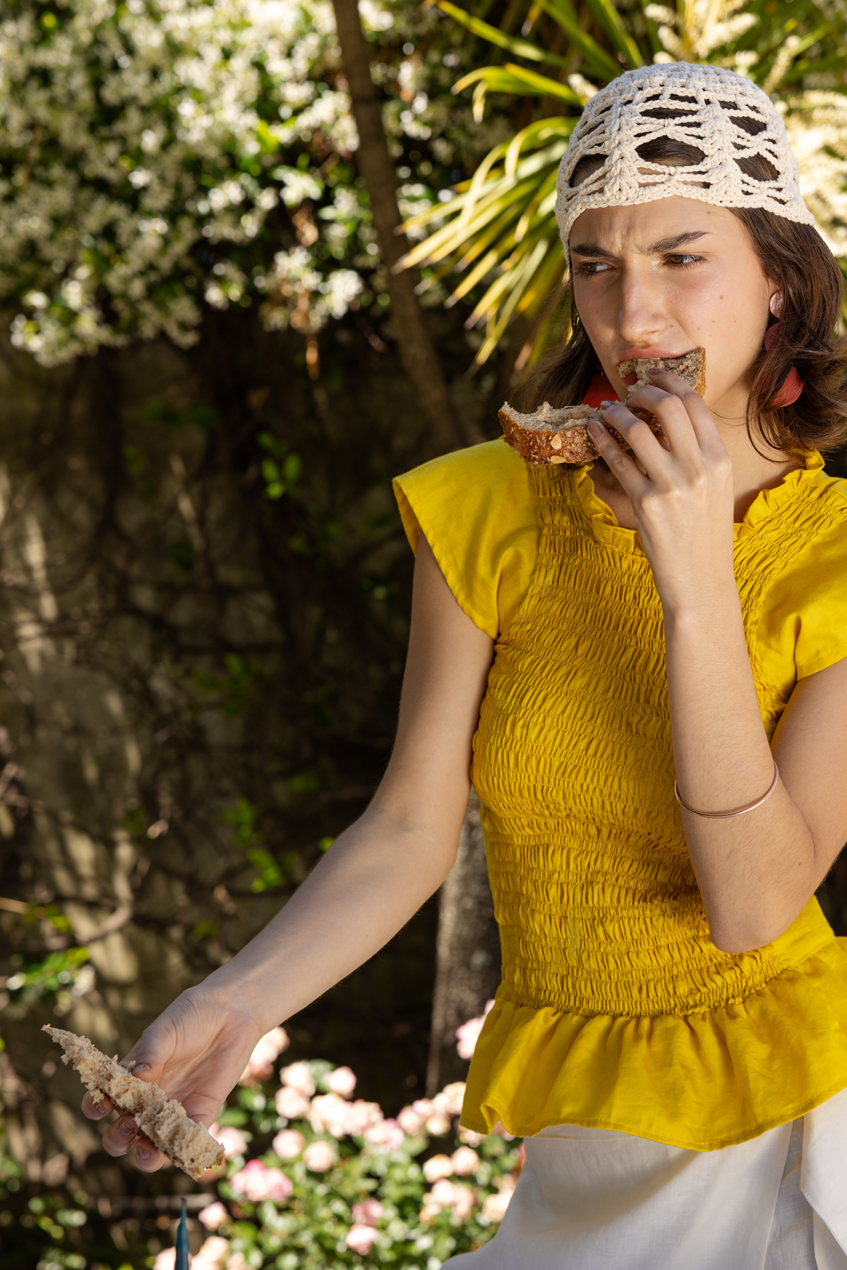 Blusa al cuerpo confeccionada en tela camisera liviana, con un trabajo de smock frontal que acompaña la figura sin comprimir.