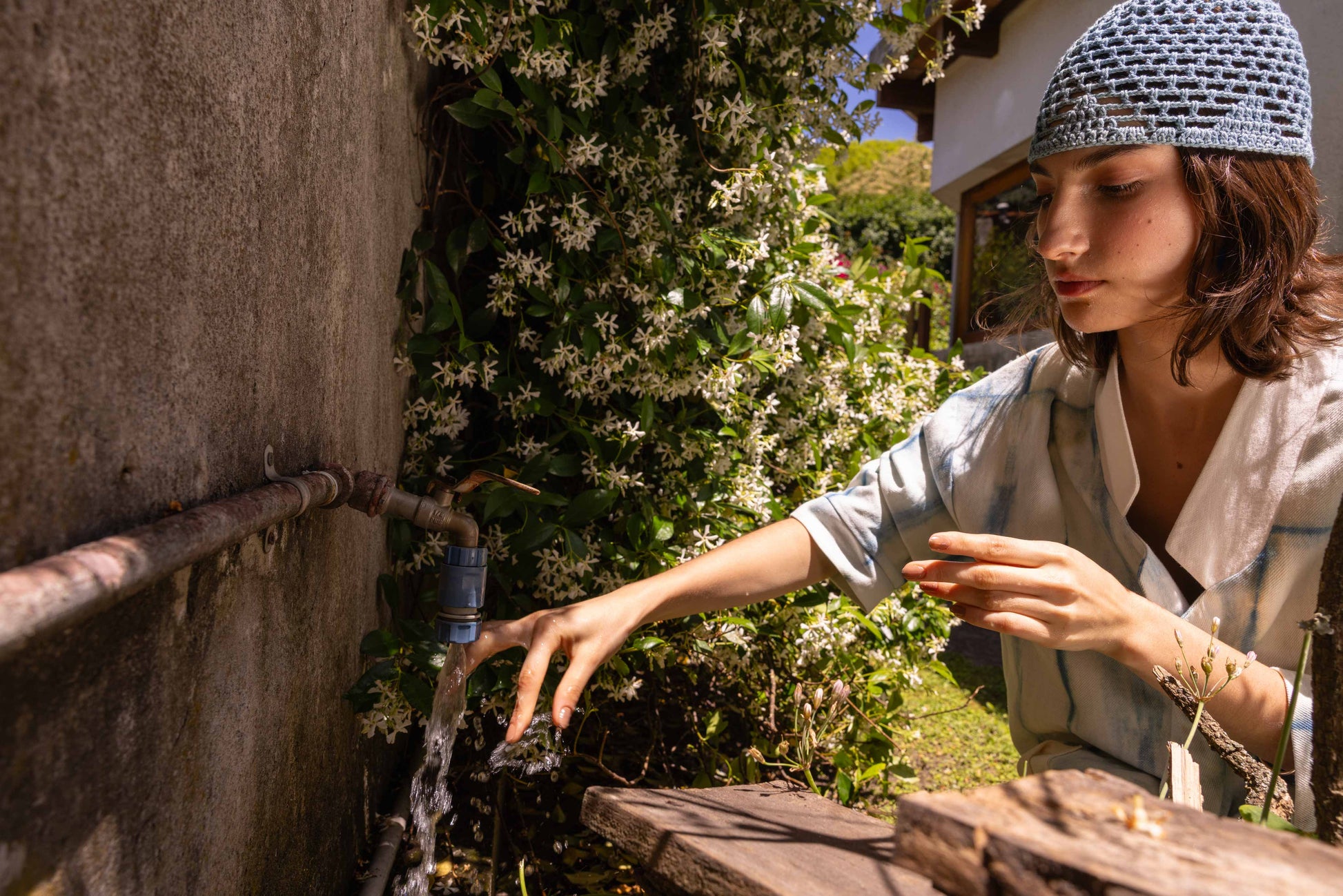 Sombrero tejido en crochet de algodón, ultra liviano y con un calado amplio que aporta frescura. Su estructura suave se adapta cómodamente a la cabeza.